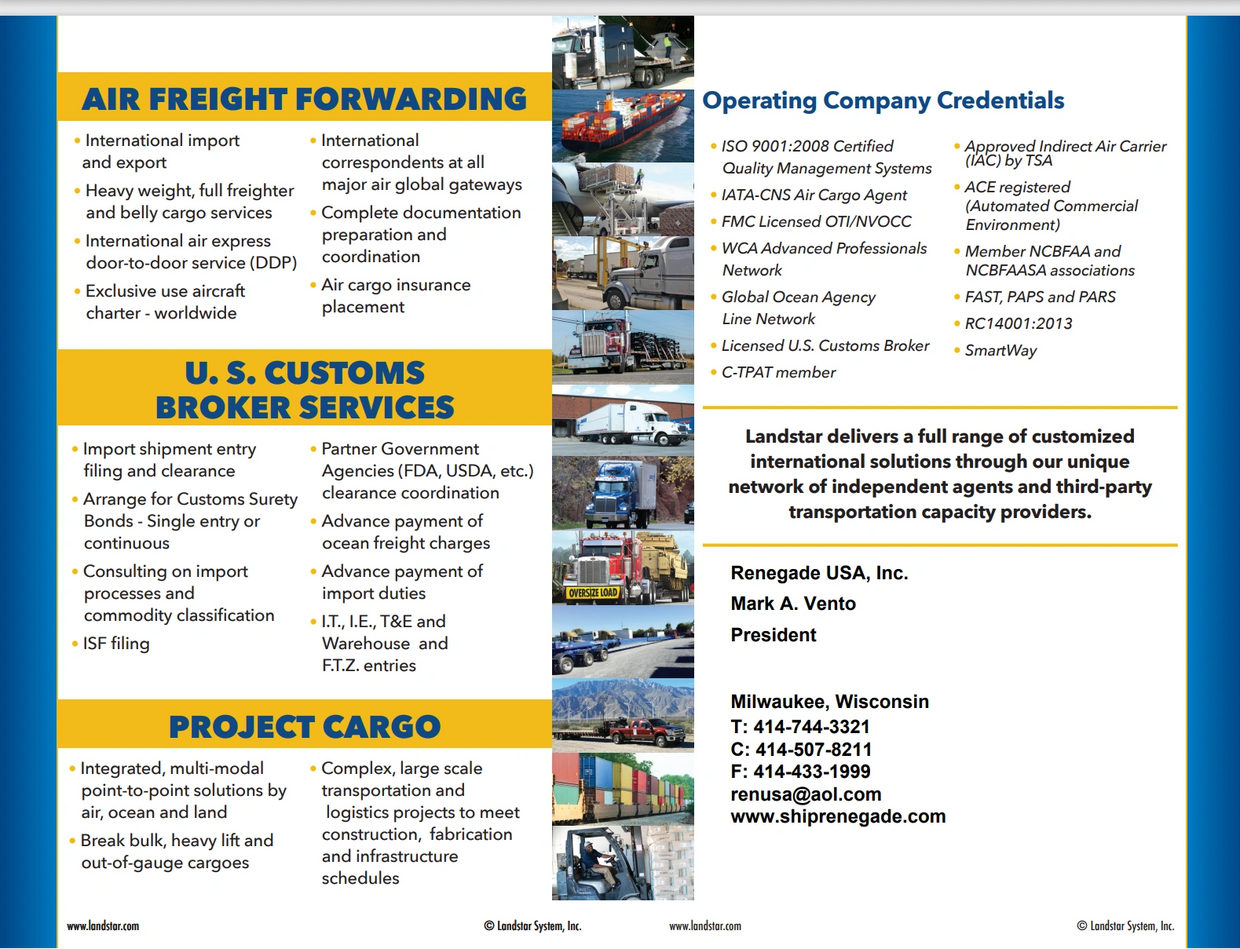 Landstar approved international personnel are qualified freight forwarders and licensed non vessel operating common carriers.